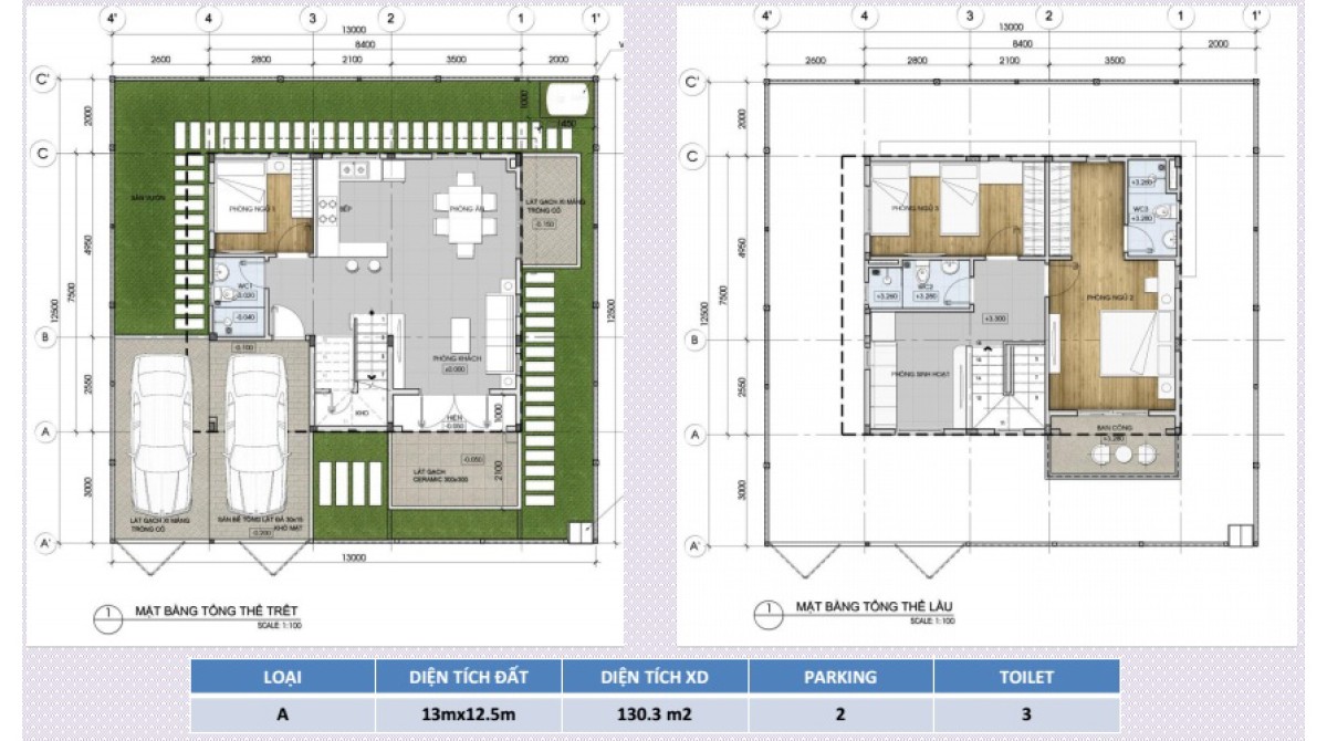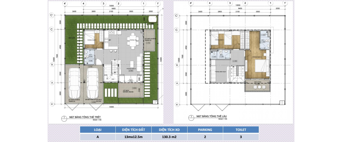 - 55 căn LOẠI A: 130,3 m2 ( 13m x 12,5m )