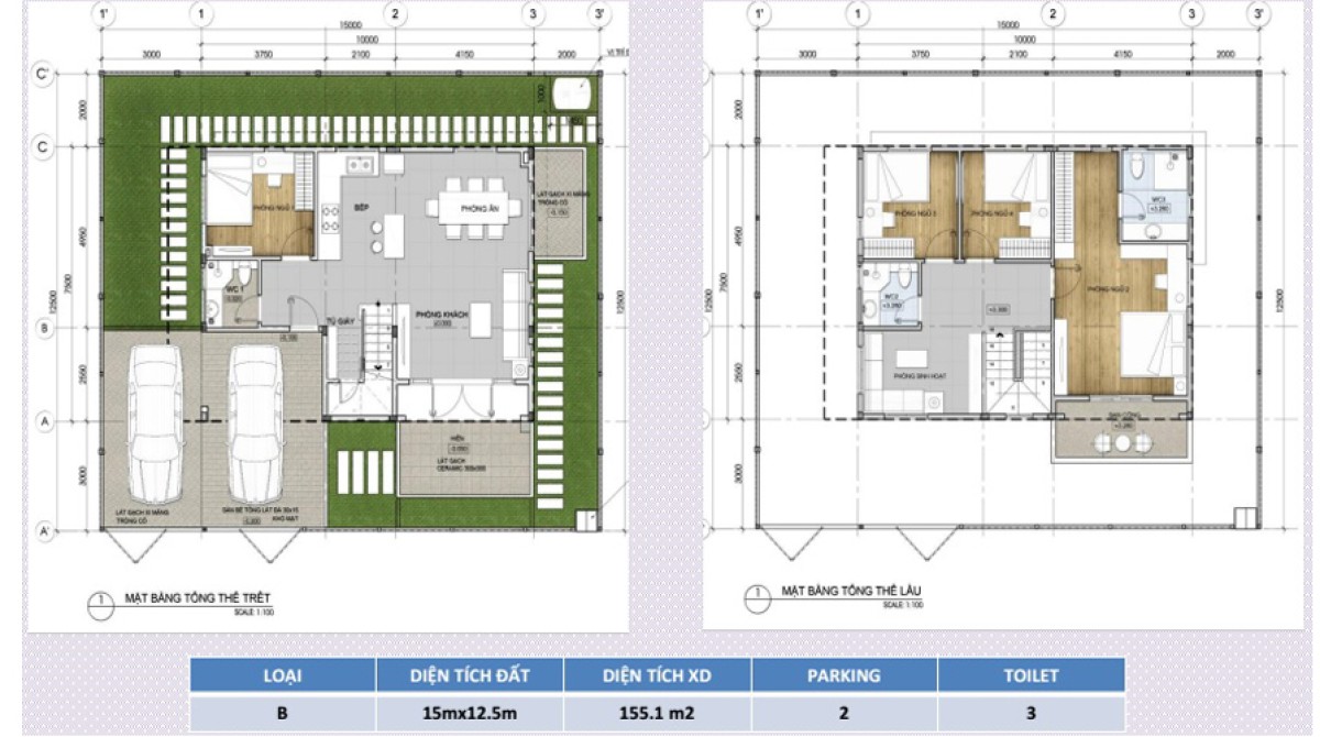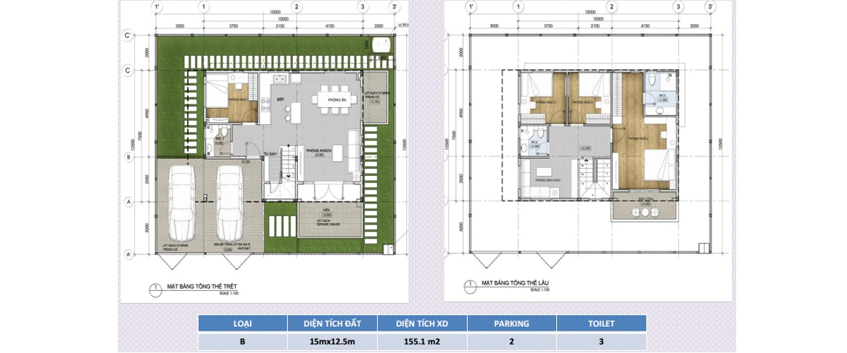 - 39 căn LOẠI B: 155,1 m2 ( 15m x 12,5m )