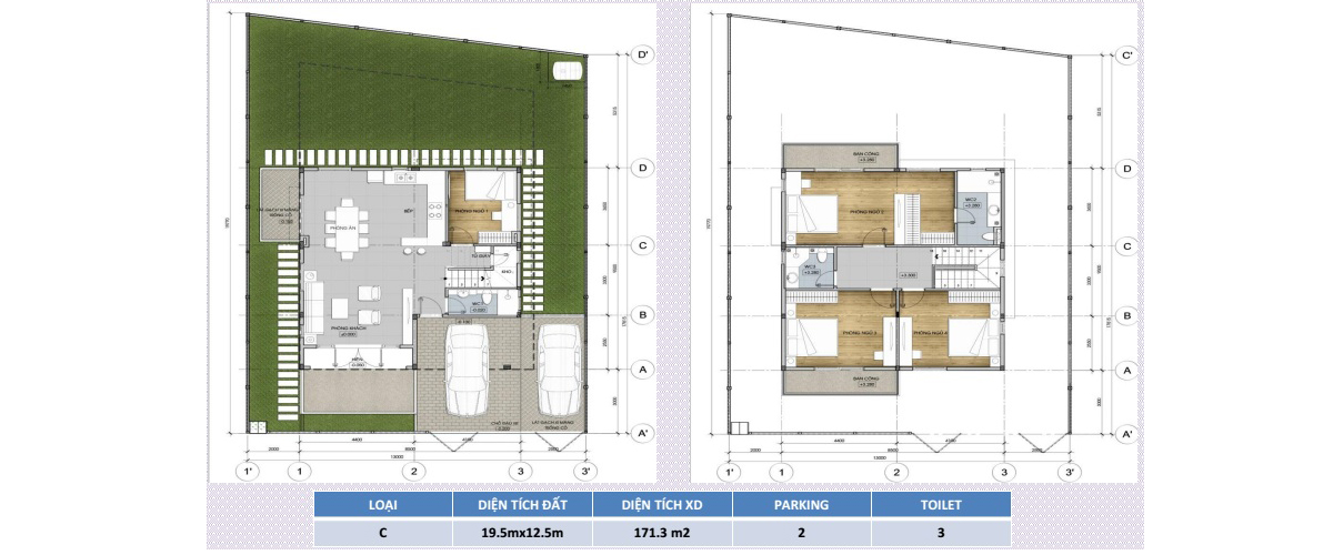 - 1 căn LOẠI D: 171,1 m2 ( 13m x 24,4m )