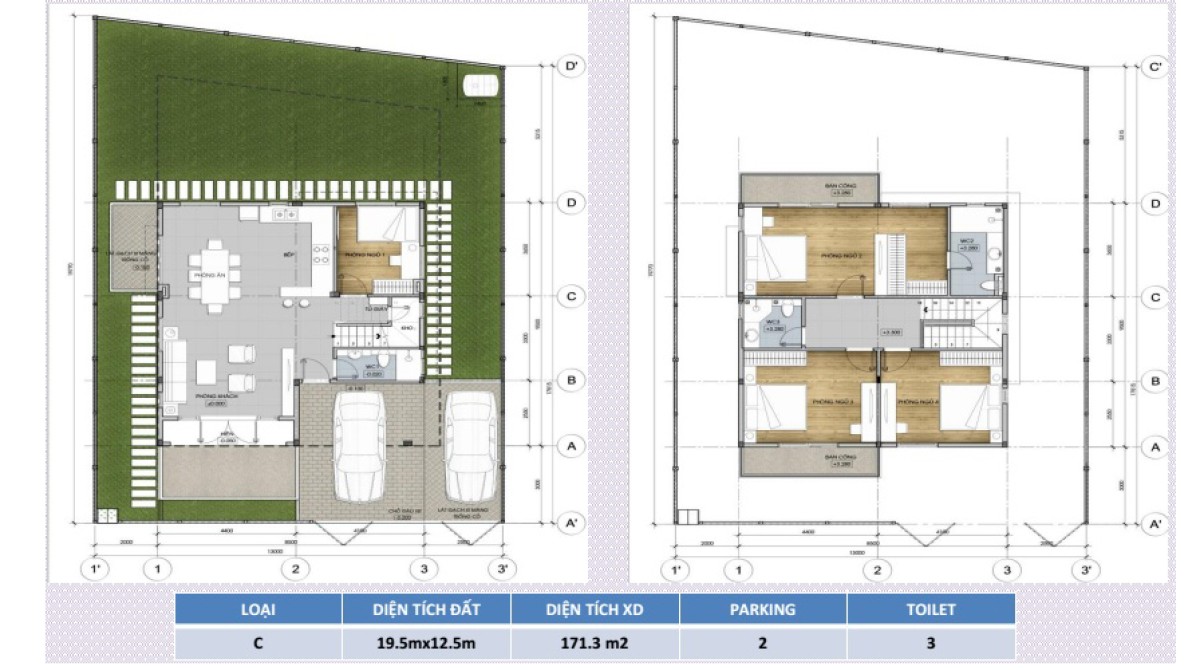 - 15 căn LOẠI C: 171,3 m2 ( 13m x 20m )