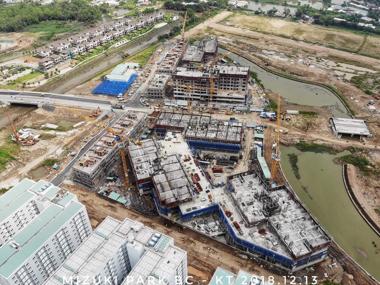 Các block căn hộ Mizuki Park với đơn vị xây dựng uy tín hàng đầu trong lĩnh vực xây dựng công trình cao tầng ở Việt Nam là Hòa Bình đã đổ sàn lên đến tầng 7 ở MP1 và MP2, đến tầng 3 đối với các block MP3, MP4, MP5, 5 block đều là tường đúc.